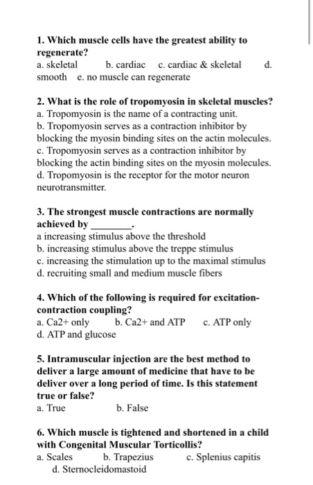 Solved 1 Which Muscle Cells Have The Greatest Ability To Chegg Com